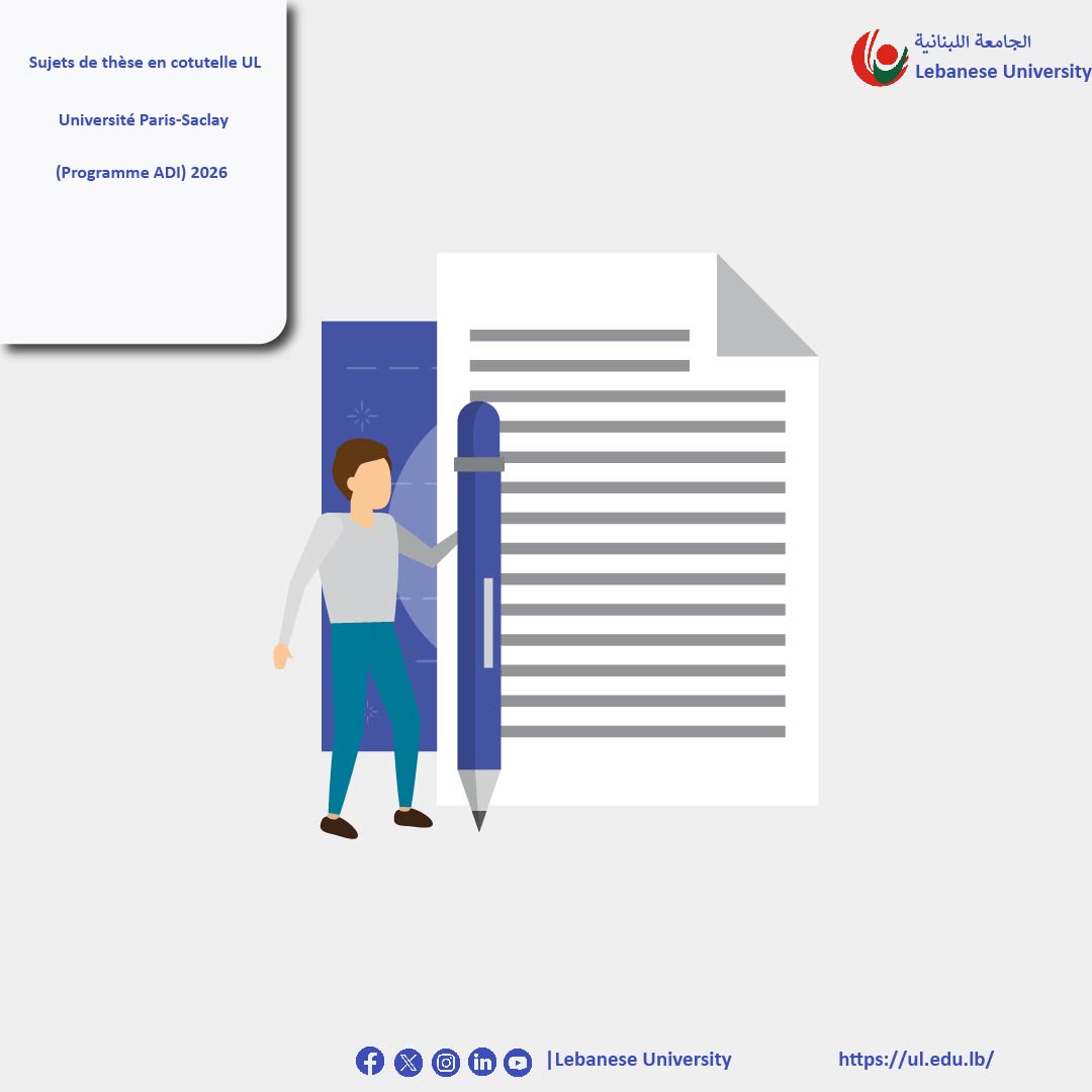 Les étudiants de l’Université Libanaise qui souhaitent candidater doivent déposer leur dossier uniquement via la plateforme ADUM, et seulement pour les sujets proposés conjointement par des chercheurs de l’Université Libanaise et leurs collègues de l’Université Paris-Saclay (ci-joint la liste de ces sujets avec le lien ADUM correspondant à chacun).